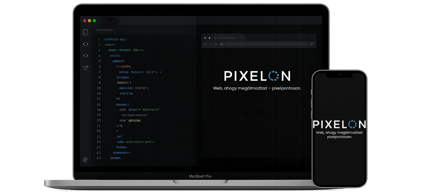 A Pixelon egy teljes körű webstúdió, ahol a tervezés, a fejlesztés és a karbantartás egyetlen, átgondolt folyamat részei. Olyan digitális megoldásokat készítünk, amelyek nemcsak jól mutatnak, hanem gyorsan betöltenek, biztonságosak és hosszú távon is megbízhatóan működnek.